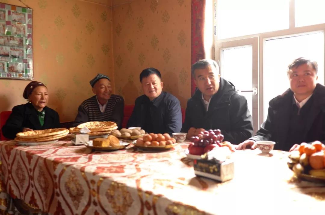 大年初一,凯赛尔·阿不都克热木校长一行慰问了托格拉克村2组老党员阿卜杜艾尼·艾合麦提,老人早早的燃起了炉子,烧好了热茶,准备好了水果、糕点、煮好了土鸡蛋和土豆,浓浓的节日氛围使家里变得温馨而喜庆。