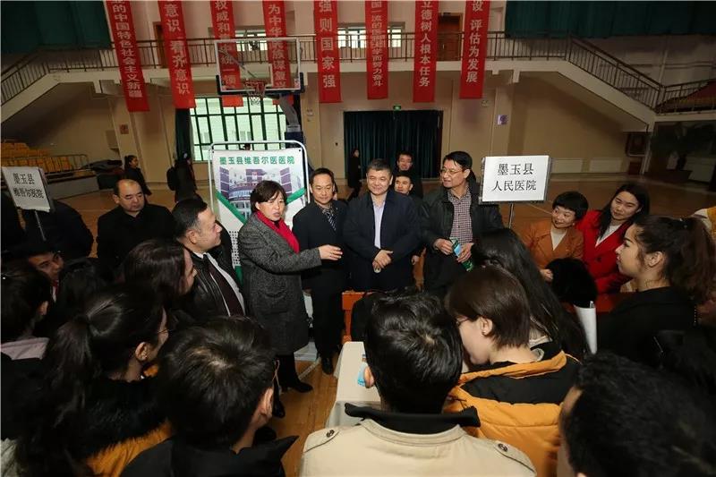 医院宣讲结束后,招聘活动有序进行,各学院主管学生工作领导与就业工作专干亲自推荐毕业生,用人单位领导主动宣传,进一步深入介绍医院发展,起到了非常突出的效果。因前期工作到位、招聘宣讲效果突出,仅开场不到半小时,就有4名学生先后与墨玉县人民医院、墨玉县维吾尔医院顺利签约。据统计,此次专场招聘会现场共签约28人,达成就业意向180余人。