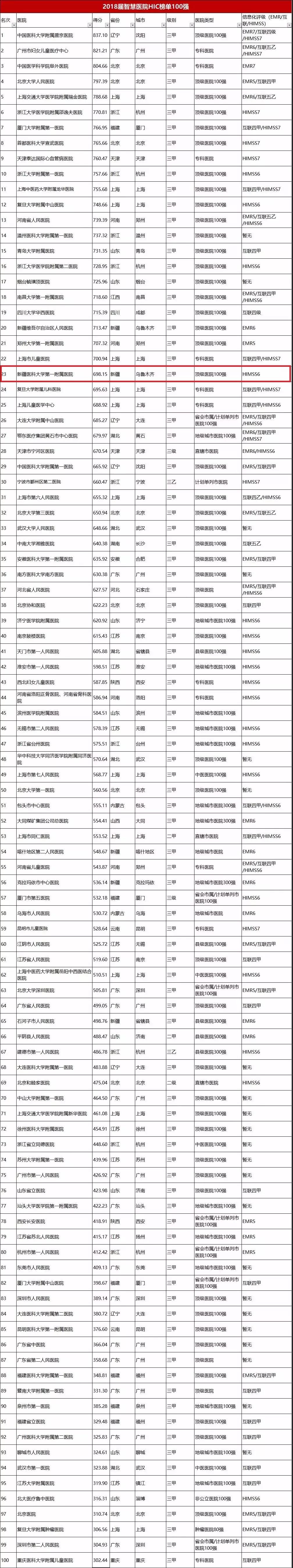 在《2018智慧医院HIC榜单100强排行榜》名单中,beat365中文在线官网第一附属医院是新疆首家通过了 HIMSS EMRAM 6级评审的公立医院,位居第23位。
