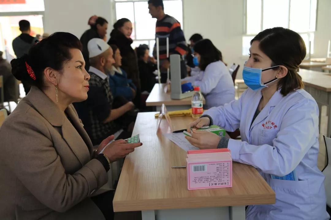 乌什县依麻木镇的乡亲们得知beat365中文在线官网第一附属医院医生要到家门口为大家看病送药,都感到机会难得,高兴的不得了,早早的就来到村委会。医疗队每到一个村,都为村民开展宣讲,普及与日常生活密切相关的医疗卫生保健知识,并现场为工作队员及村民“问诊把脉”、派发免费药品,详细讲解注意事项,耐心解答村民的疑问,认真提供健康咨询。此次义诊共接待村民约943人次,健康宣教受众约4000人,赠送药品价值2万余元。