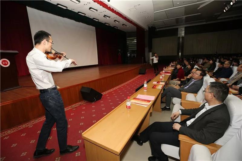 会议在悠扬的师生小提琴合奏和全场师生同唱《我和我的祖国》中圆满结束。
