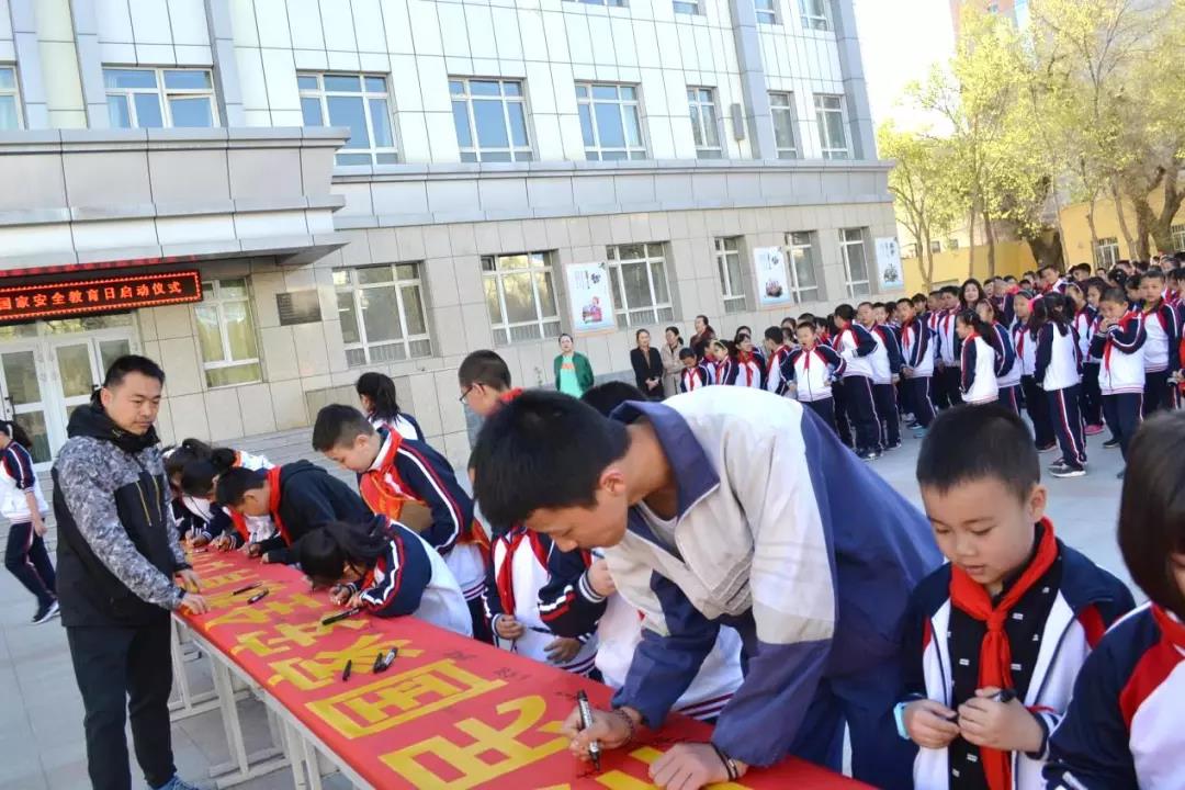 升旗仪式结束后,师生代表在“国家安全教育日”主题横幅上郑重签字,表达了维护国家安全的信心和决心。