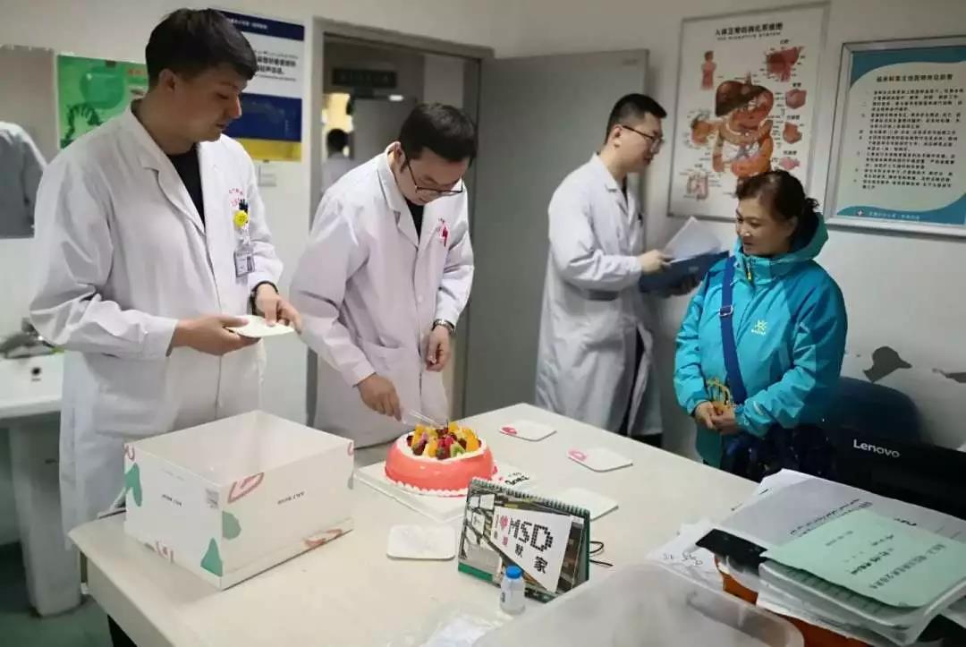 看着眼前救过自己的医生手捧蛋糕的场景