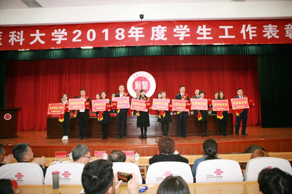 大会表彰了维吾尔医学院等5个“学生工作先进集体”、护理学院等6个“五四红旗”团委、临床医学2015-6班等55个“先进班集体”、4号公寓406宿舍等100间文明宿舍等先进集体。同时,还表彰了陈芳等17名“优秀学生工作者”、艾合买提•图尔贡等8名“优秀团务工作者”,以及“优秀班主任”、“优秀大学生”、“优秀学生干部”等先进个人。