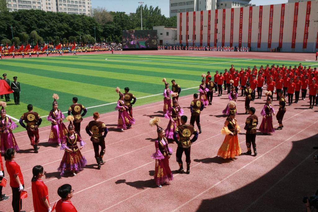 凯赛尔•阿不都克热木校长在致开幕辞时希望,同学们在运动中迸发激情、展示青春,练就强健体魄。随时准备把人生热情最高涨、精力最充沛、经验最丰富的各个阶段奉献给党和人民的事业。用运动的激情放飞梦想,在中华人民共和国成立70周年的历史画卷上展现属于新医的时代风采,在实现中华民族伟大复兴的大道上书写新医青年的壮美华章!