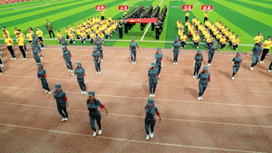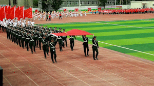下午3点30分,伴随着“运动员进行曲”,和着音乐的节拍,国旗仪仗队迈着整齐而坚定的步伐,托举着鲜艳的五星红旗缓缓通过主席台,正式拉开了运动会入场式的序幕。在国旗的引领下,红旗方阵、附属中学鼓号队方阵,以及各学院运动员方阵依次入场。主席台和看台上的观众全体起立向各个方阵表示敬意、鼓掌加油。