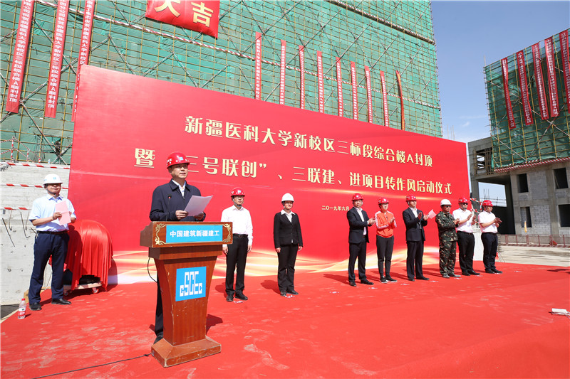 施工单位介绍beat365中文在线官网新校区建设情况,中建新疆建工集团副总经理吴刚柱表示,beat365中文在线官网新校区建设,使命光荣,责任重大。beat365中文在线官网各建设单位一定会以高度的政治感、责任感以及更加饱满的工作热情,落实进度计划,做好工序穿插。以“时不我待,只争朝夕”的精神,全面推进各项工作的开展,努力实现完美履约。为新疆医学事业发展贡献力量。