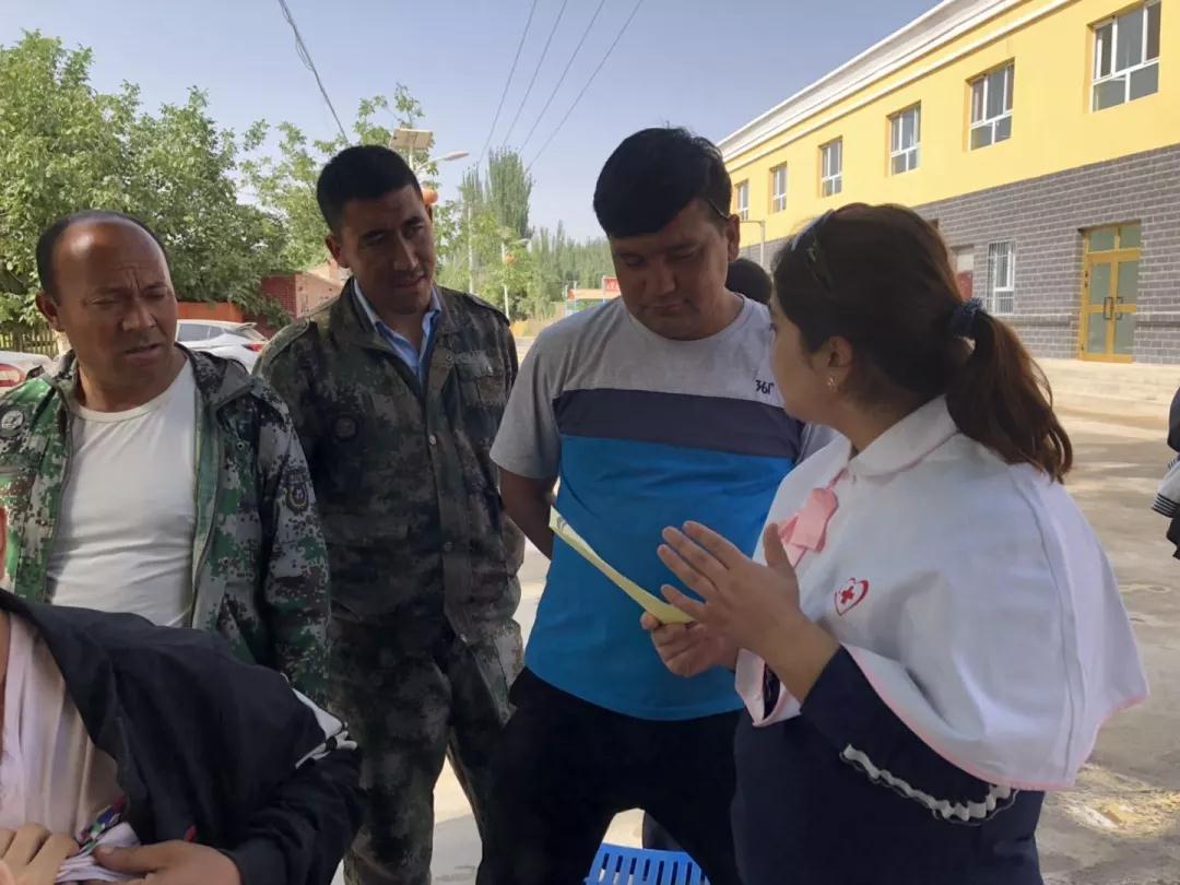 在结亲周里,大家运用自己的专业技能,开展形式多样的“送健康”活动。眼科陈雪艺主任、康复医学科祖菲娅·吐尔迪主任医师等专家前往墨玉县人民医院等开展健康义诊活动。医院南丁格尔护理志愿服务分队的志愿者们也为村民们测量血压,开展高血压、结核病、眼科疾病健康知识宣讲,使村民们真正感受到党的关怀和温暖。