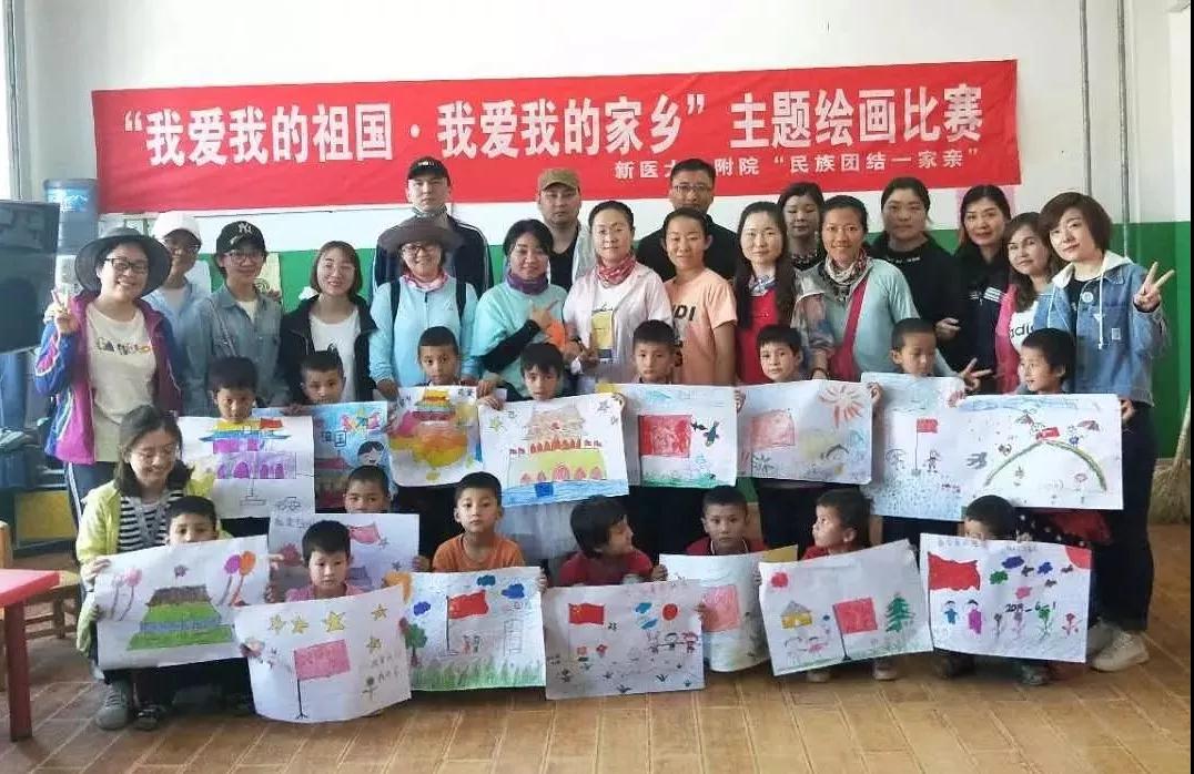 5月30日,beat365中文在线官网第一附属的结亲干部们带着医院管理部门为当地孩子们准备的彩笔、画纸、跳绳、玩具等,来到了巴夏克其村的幼儿园,在那里举办了一场“我爱我的祖国,我爱我的家乡”主题绘画比赛。