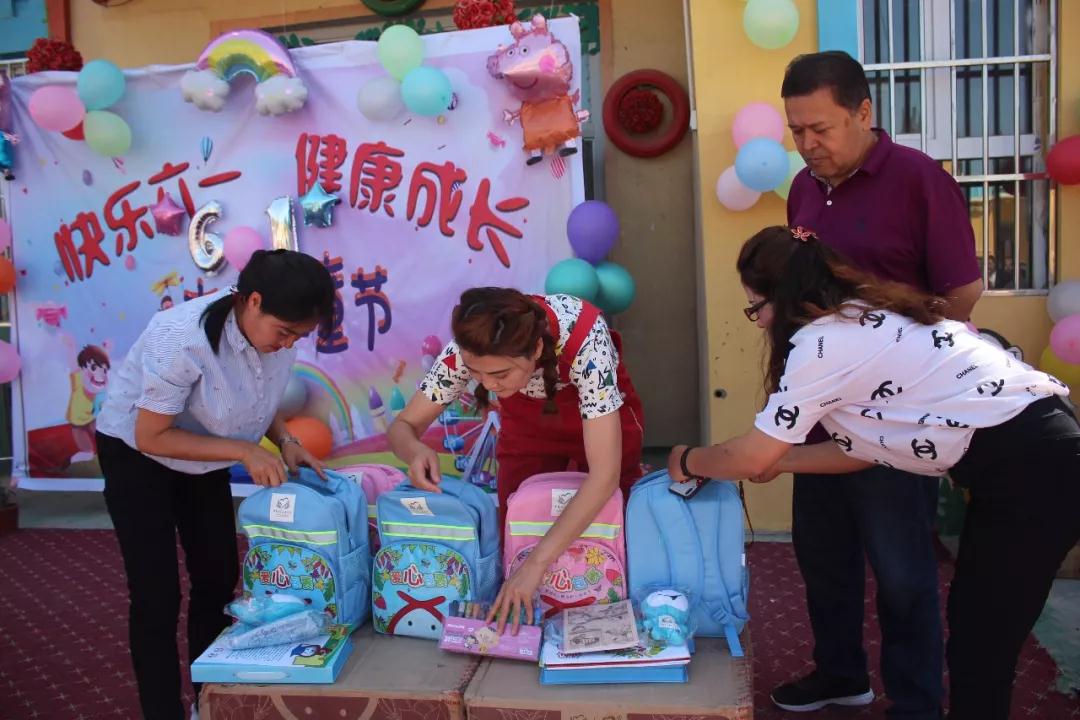 医院派往该幼儿园的支教副园长艾则孜·木沙江、支教老师戴丽莉、迪里拜尔·玉赛音艾合买提将爱心文具发到家长和孩子们手中,希望孩子们用美丽的画笔描绘出自己幸福的生活。
