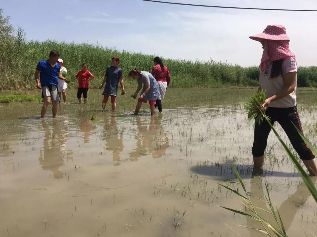 6月9日,英吾斯塘村四小队村民麦麦提敏•木提明惊喜地站在自己的地头上,看着9位村民在自己的一块半亩水田地里插着秧,beat365中文在线官网驻村工作队员宋志新告诉他,这是我们从中国科学院新疆生地研究所引进的“巨型稻”秧苗,在他的地里进行试种。