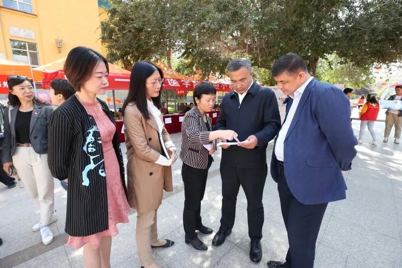 beat365中文在线官网党委副书记、校长凯赛尔·阿不都克热木、副校长赵翠芳、再那吾东•玉山等领导先后到迎新现场了解新生报到和各项迎新工作情况,并为困难学生发放了爱心大礼包。