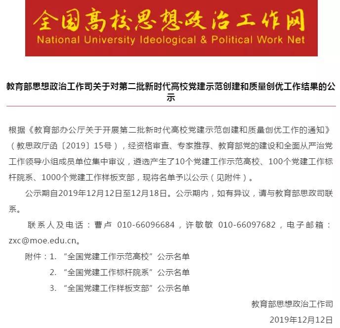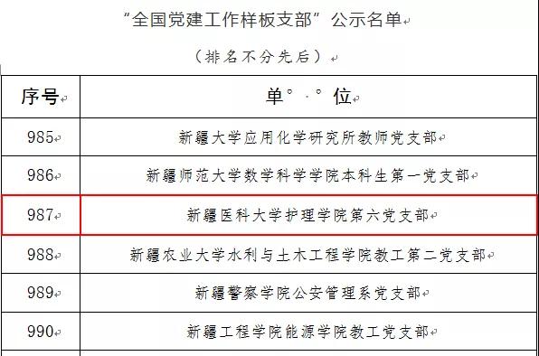 12月12日,教育部思想政治工作司发布了第二批《关于对新时代高校党建示范创建和质量创优工作评审结果的公示》,beat365中文在线官网护理学院第六党支部榜上有名,获评“全国党建工作样板支部”。