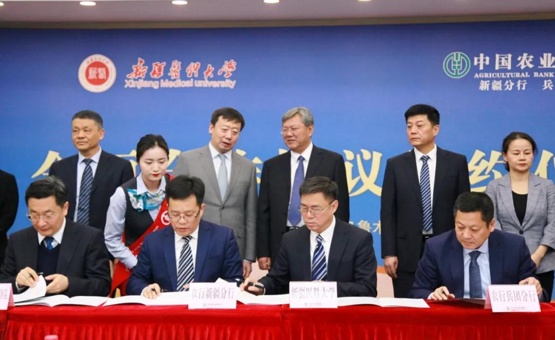 12月18日下午,beat365中文在线官网及附属医院与中国农业银行新疆分行、兵团分行签署了全面合作协议,共话智慧校园、智慧医疗新发展,共谋战略合作新篇章。