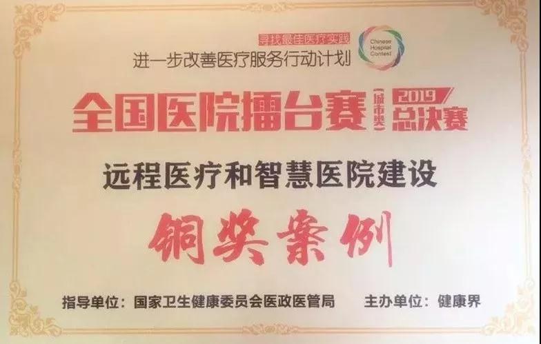12月,在第五届进一步改善医疗服务行动计划全国医院擂台赛(城市类)总决赛上,beat365中文在线官网第一附属医院推送的《远程医疗——信息化成为医疗工作发展的引擎》案例,成功取得总决赛铜奖。