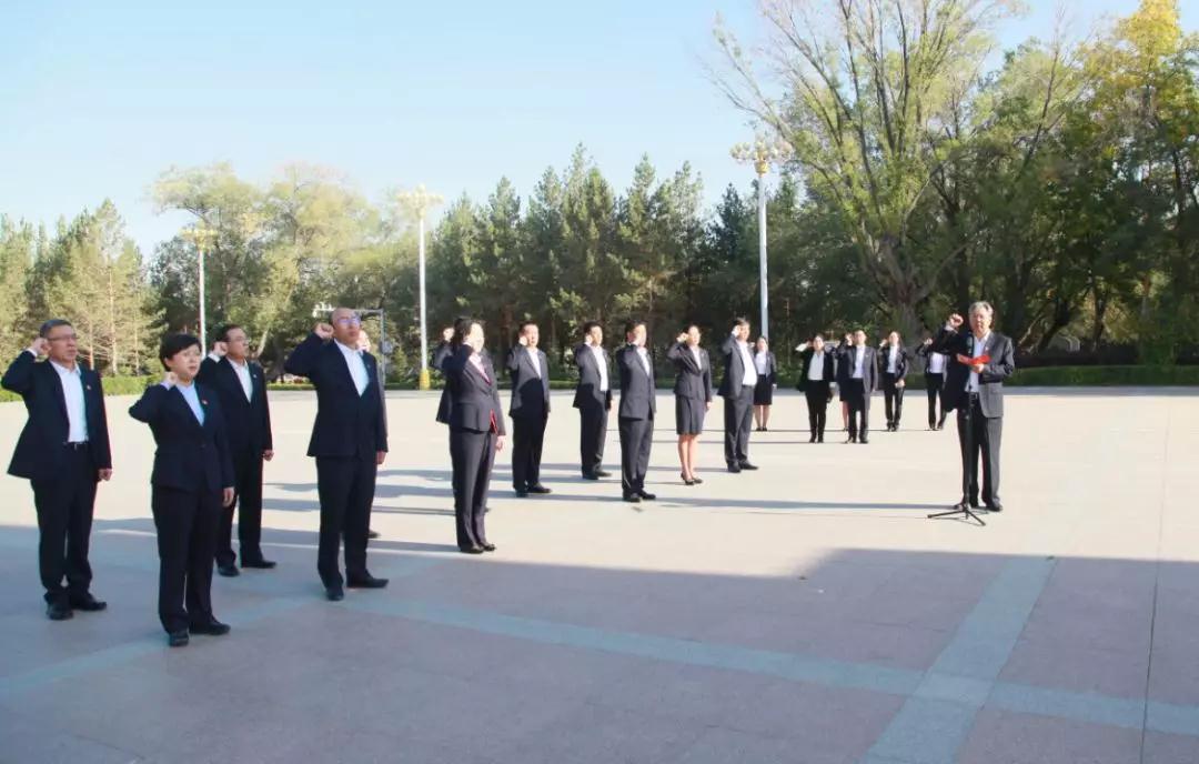 9月28日国庆前夕,乌鲁木齐市烈士陵园青松翠柏郁郁葱葱,静静守护着英雄们的忠魂。校党委书记高发水带领校领导班子成员及副厅级以上干部来到这里,追寻共产党人的初心和使命。
