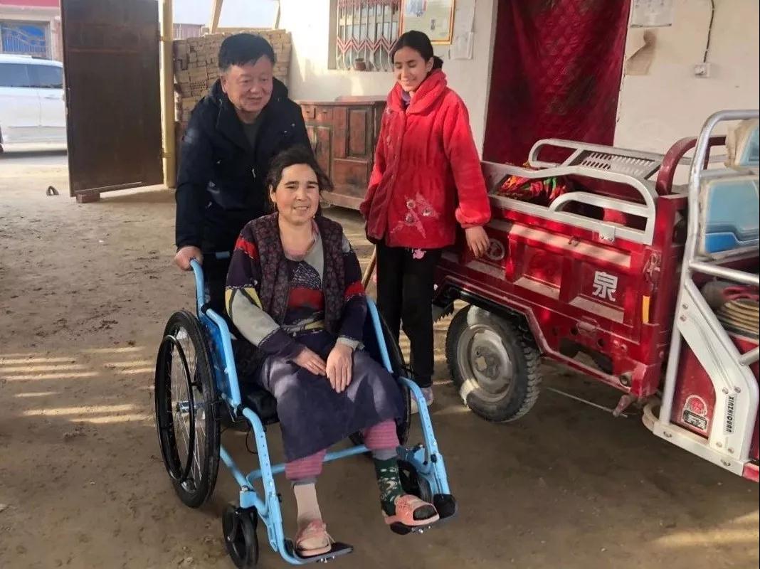 英吾斯塘村工作队入户为村民送新轮椅