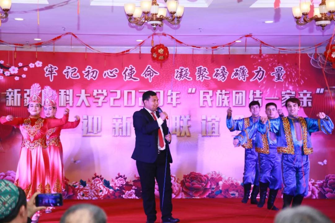 联谊会上,校党委副书记、校长凯赛尔·阿不都克热木代表校党委致辞,向墨玉远道而来的亲戚们,向各族师生员工、医务工作者、离退休同志及各位家属致以新年的问候和美好的祝愿!他说,刚刚过去的2019年,全体新医人抢抓机遇、迎难而上,集中力量办大事,集中精力办自己的事,我们迸发了前所未有的伟力,用奋斗创造了新时代!我们笃行致远,释放了无穷无尽的活力,用智慧创造了新时代!我们大刀改革,激发了攻坚克难的动力,用魄力创造了新时代!我们守护初心,锻造了为民服务的能力,用担当创造了新时代!新的一年,让我们用奋斗为立德树人增添光彩,用拼搏为健康中国注入活力,共同创造无愧于这个伟大新时代的新辉煌!