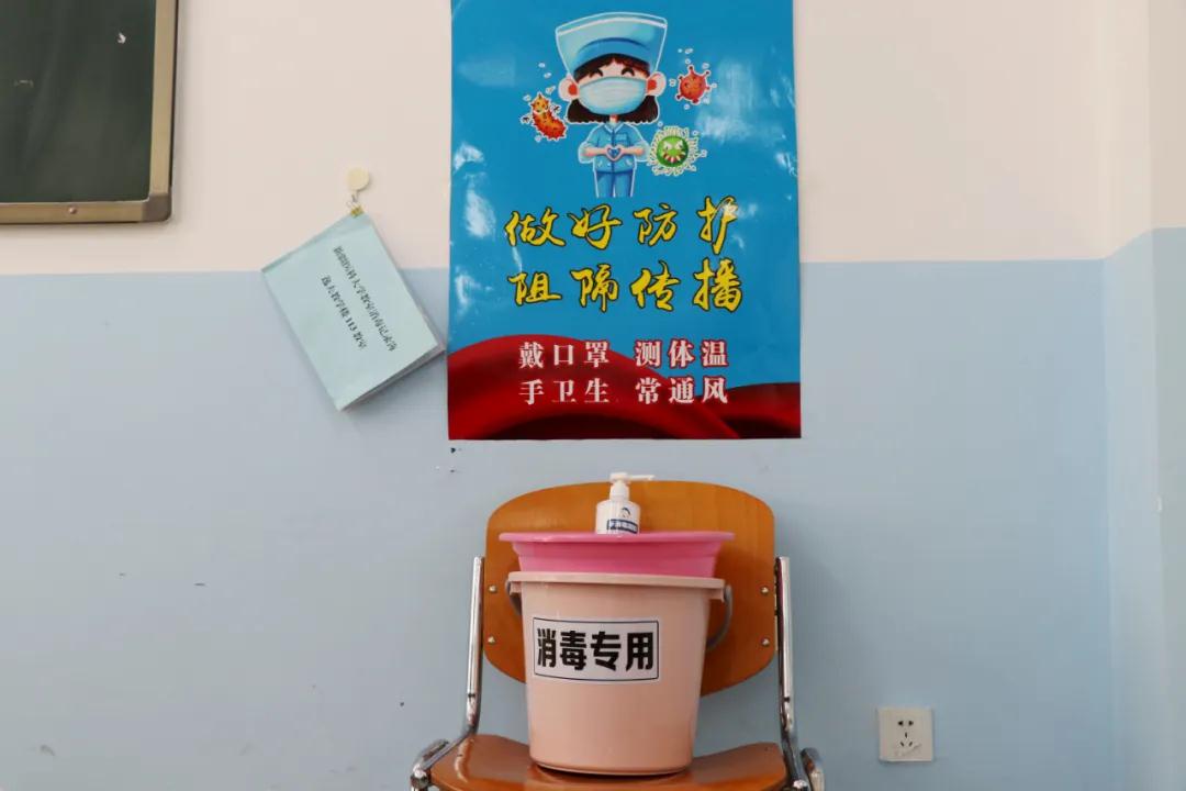 每间教室配备了专用消毒用品