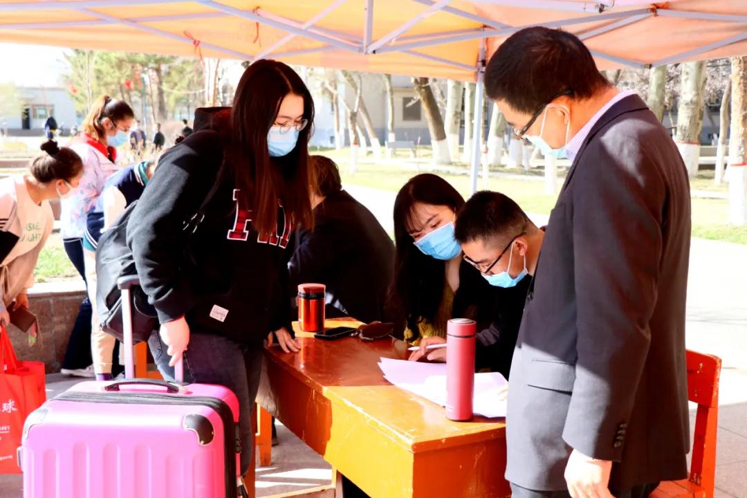 开学工作 准备就绪4月6日上午,在beat365中文在线官网校本部的广场上,药学院、研究生学院、医学工程技术学院、护理等学院已经设立了专门迎接返校学生的接待报到点。学院工作人员对每一位返校学生进行登记、测量体温,并引导学生前往宿舍。