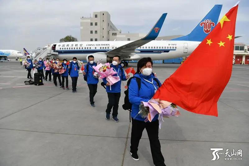 中国赴吉尔吉斯斯坦联合工作组圆满完成任务回国。全媒体记者 张万德 摄