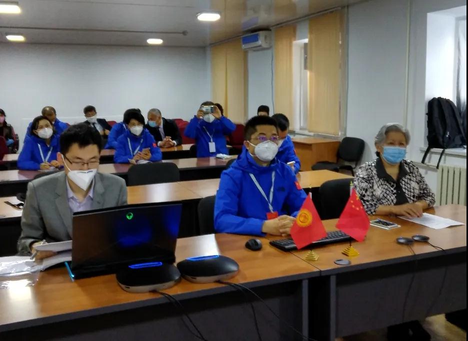 两名新医专家以中西医结合抗疫为特色,结合中医“未病先防,既病防变”的预防医学思想,从医务人员院感控制、新冠肺炎中国第七版指南解读等方面,向吉尔吉斯斯坦全国卫生部门工作人员、社区工作人员等提供远程视频授课,多次与临床一线、卫生防疫人员现场交流、座谈,就中国在新冠肺炎患者的临床诊断、治疗、危重症患者治疗、机械通气、恢复期血浆治疗等方面的经验为吉方进行全面详细的讲解,并为吉国卫生防疫人员发放健康包。