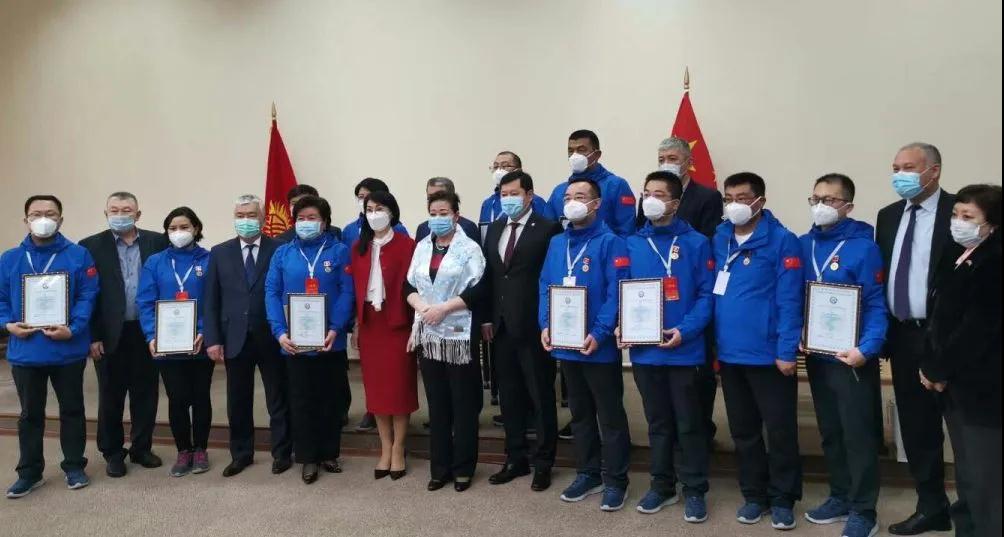 在吉援助抗疫期间,两名专家充分展示了中国医疗专家精湛的业务水平和医者担当,展示了新医人的医疗技术实力和新医精神,得到吉国政府、医疗卫生行业的肯定和赞扬,荣获吉尔吉斯斯坦卫生部颁发的“吉尔吉斯斯坦医疗卫生事业国家勋章”及荣誉证书。