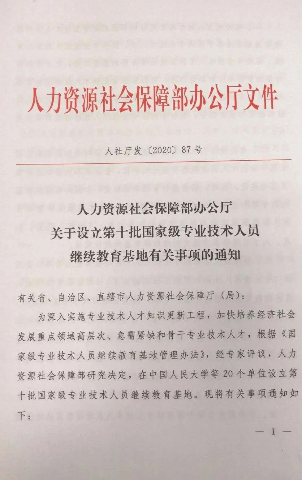 近日,国家人力资源和社会保障部发布《关于设立第十批国家级专业技术人员继续教育基地有关事项的通知》,beat365中文在线官网获批第十批国家级专业技术人员继续教育基地(全国共20个)。