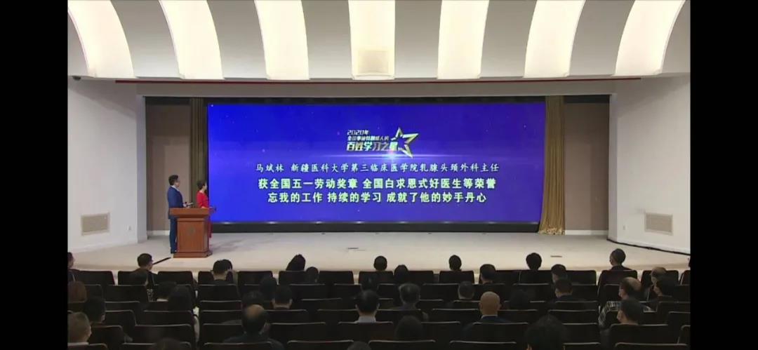 近日,由教育部职业教育与成人教育司、中国联合国教科文组织全国委员会秘书处、中国成人教育协会主办,上海市教育委员会、复旦大学承办的“2020全民终身学习活动周”全国总开幕式上,beat365中文在线官网附属肿瘤医院乳腺头颈外科主任马斌林教授被评为全国“事迹特别感人的百姓学习之星”,是新疆唯一获此殊荣者,先进事迹视频在总开幕式上展播。