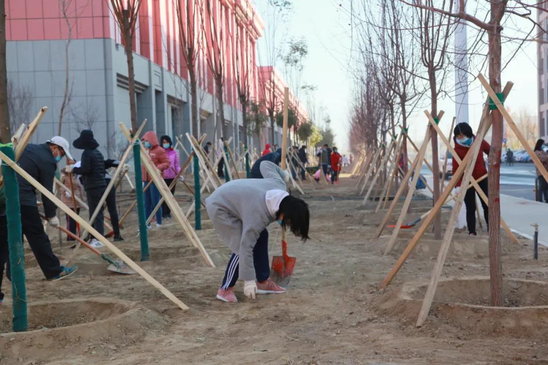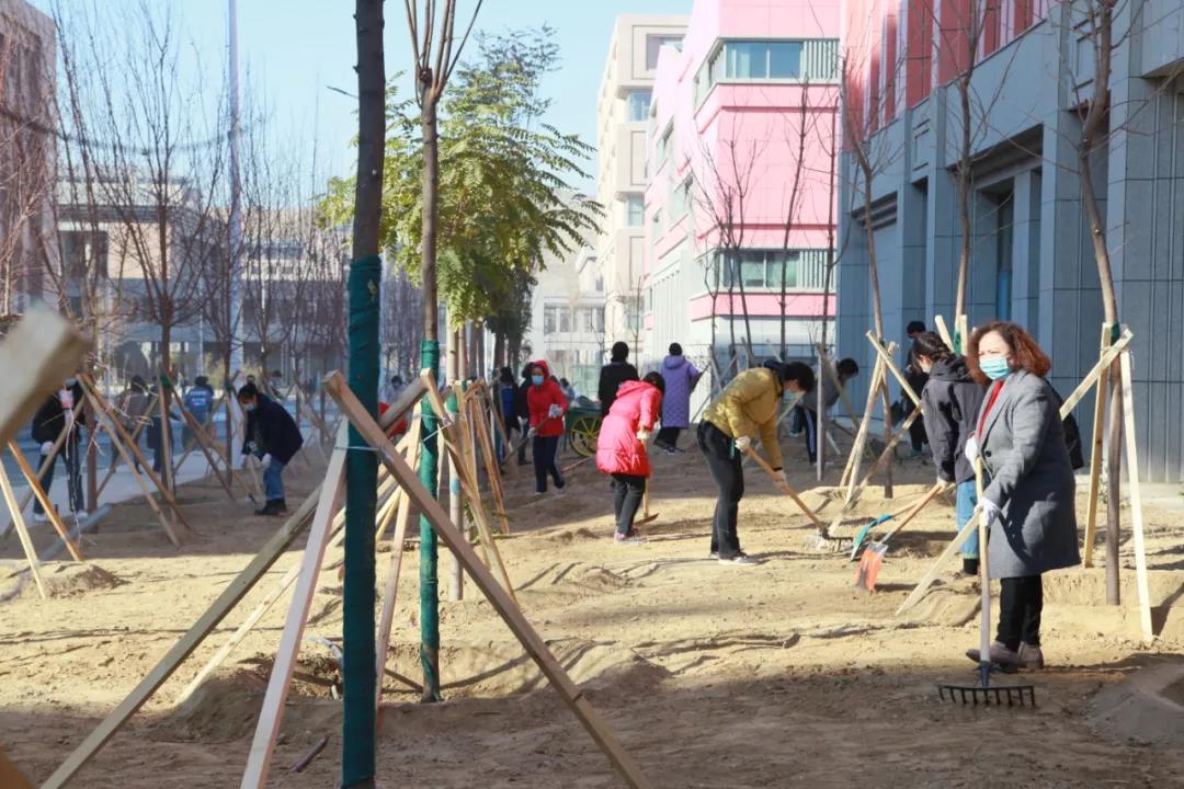 新医人走下讲台、走出办公室、实验室,带着火热的激情投入到新校区秋季植绿的劳动锻炼中,深挖树坑、换填土壤、修整围堰、清理和平整土地、加固树木。横成排、竖成行的一棵棵夏橡、银杏、柳树、红枫、樱花、香槐等美丽的树种在新校区的土壤里牢牢扎下了根。