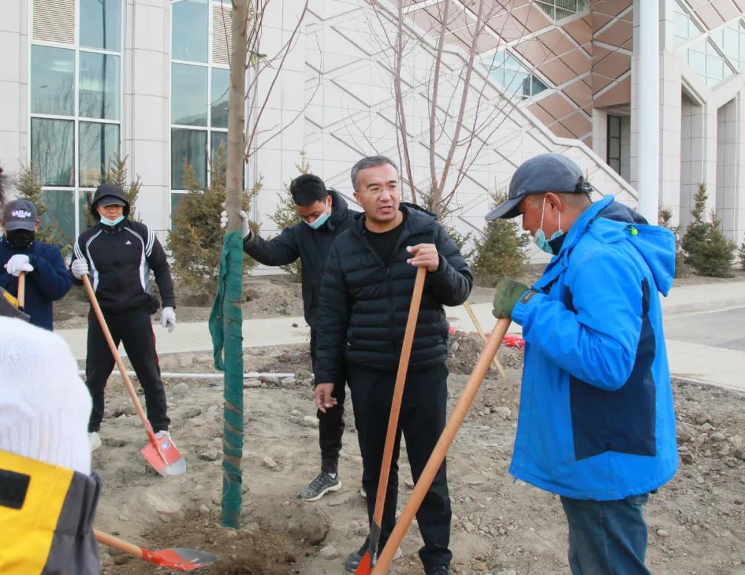 在劳动中,大家拿出了“敢叫日月换新天”豪迈气势,战天斗地、热火朝天地动手建设自己的新家园。用尺子量、用绳子比对,20公分高的树坑围堰齐整规范、标准统一,一棵棵树木被支撑架牢牢固定,挺拔耸立。在植绿的点点滴滴中,新医人展现着对建设新家园的热心、精心、细心和耐心,建设着来年春暖花开的美丽雪莲山。