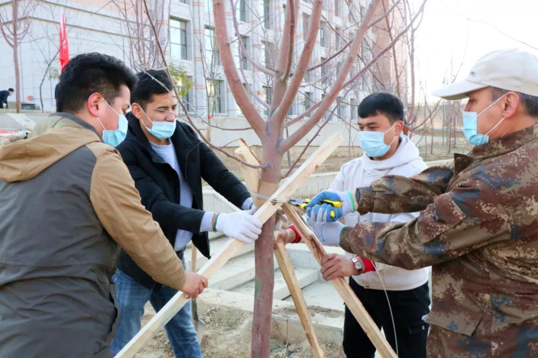 在雪莲山校区,不仅有胡杨、柳树、大叶白蜡、红叶海棠、樱花、珍珠梅、五角枫等四季呈现出不同色彩的树木,更有五堡大枣、黑核桃、大果李子、香梨、丽桃、樱桃、水蜜桃等瓜果香飘的果树,让行走在校园里的新医师生们,如同置身于鸟语花香的美丽大自然,沉醉在暗香浮动的花草林间。