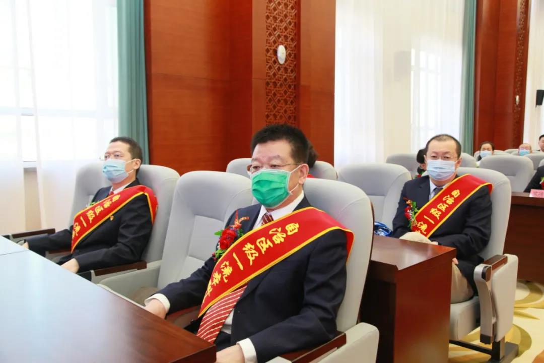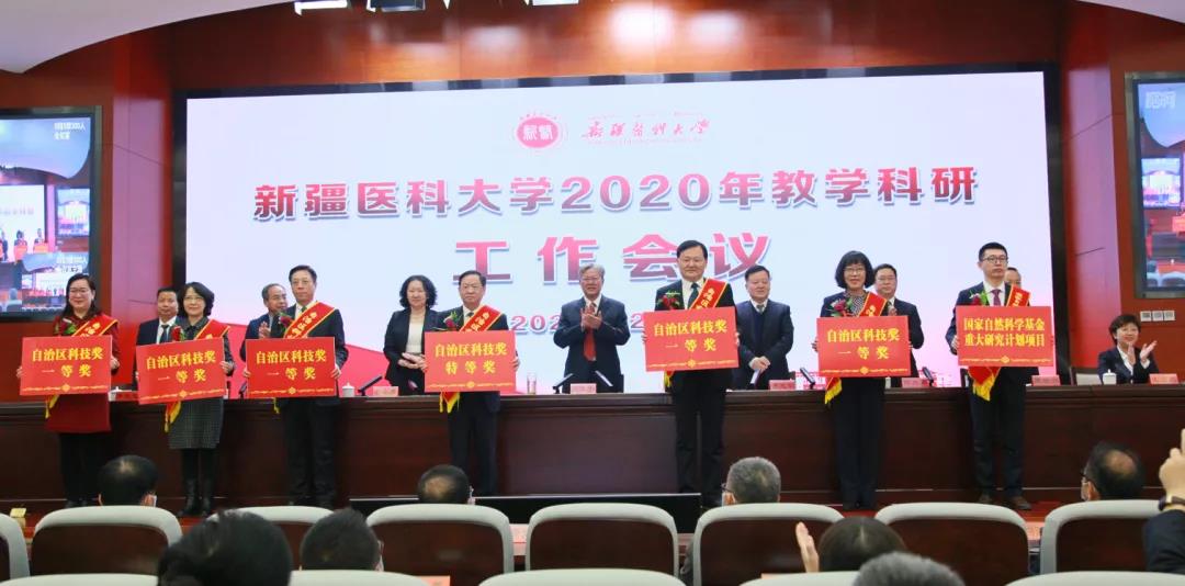 在热烈的掌声中,大会对4门国家级一流本科课程和6门自治区级一流本科课程的负责人、7名2020年校级教学名师和18名校级教学能手、1项重大科研项目和6个重大科研成果奖的获得者进行了表彰。