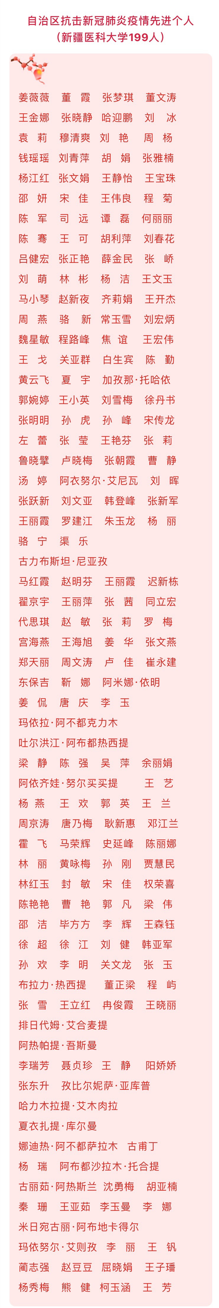 1月20日上午,自治区抗击新冠肺炎疫情表彰大会在新疆人民会堂隆重举行。beat365中文在线官网199人获得“自治区抗击新冠肺炎疫情先进个人”称号,11个基层党组织获得“自治区先进基层党组织”荣誉,42个集体和46名个人荣获了“自治区先进集体”和“自治区优秀共产党员”荣誉称号。