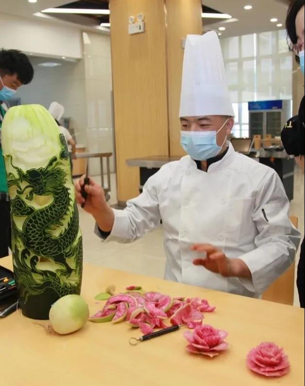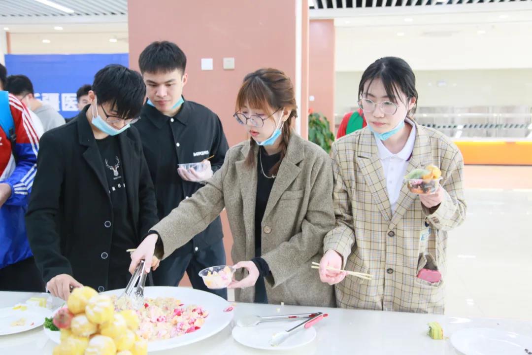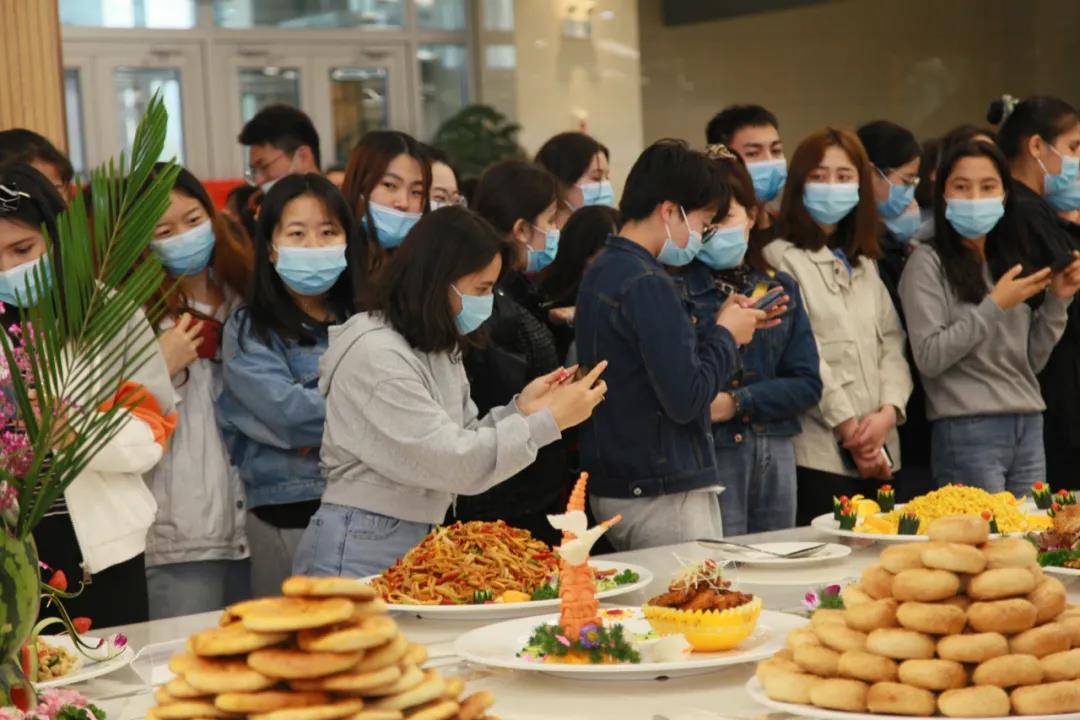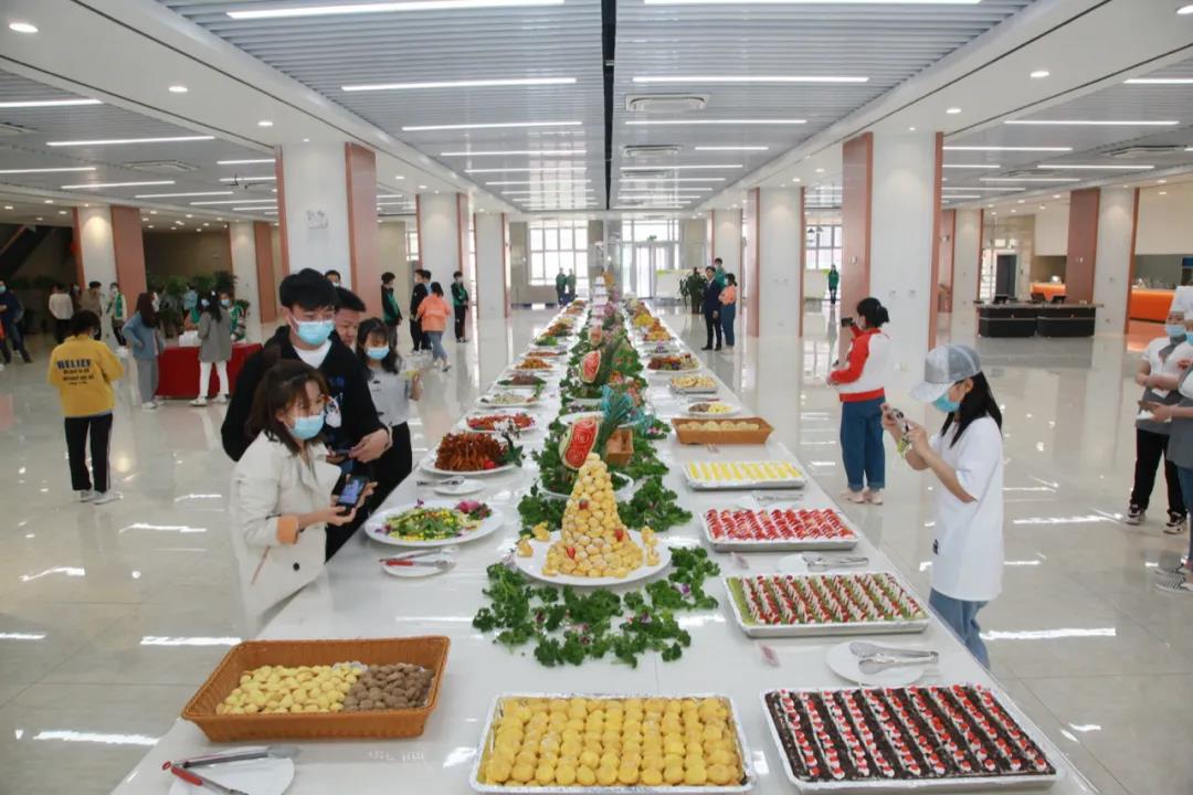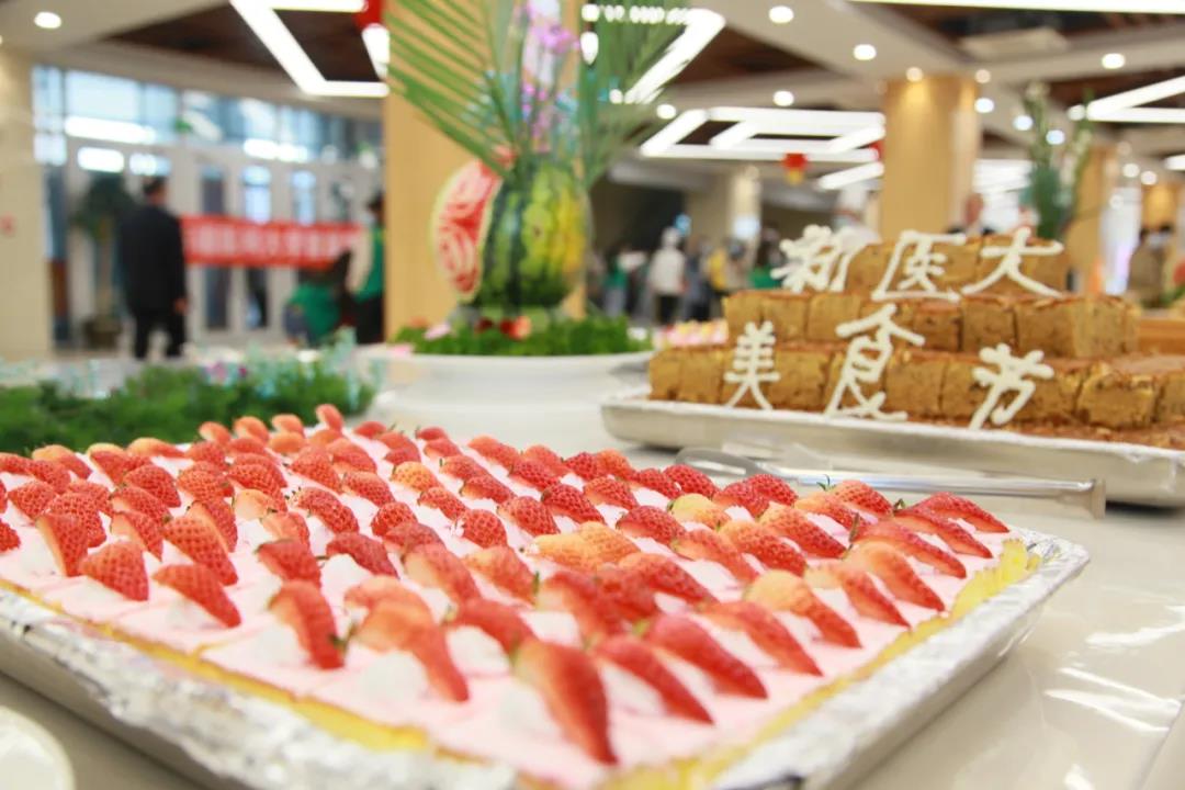 美味可口、品种繁多的精美菜品,深深吸引了同学们的目光。糕点师傅专门制作的六层蛋糕飘出阵阵奶油香气,技艺精湛的厨师们还在西瓜上雕刻出“新医大美食节”的字样,大家一边赞叹,一边拿出手机拍照发朋友圈,花式炫耀。诱人的香味弥漫在餐厅里,挑动起每个人的味觉。