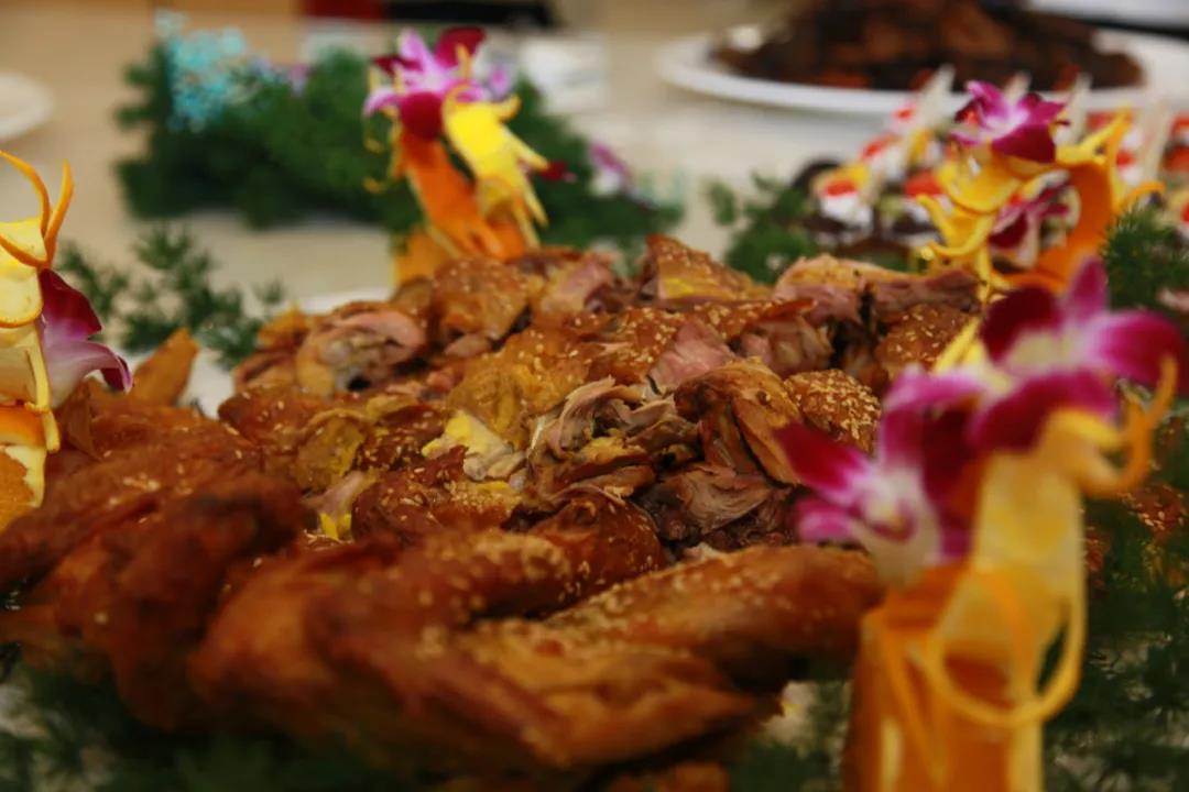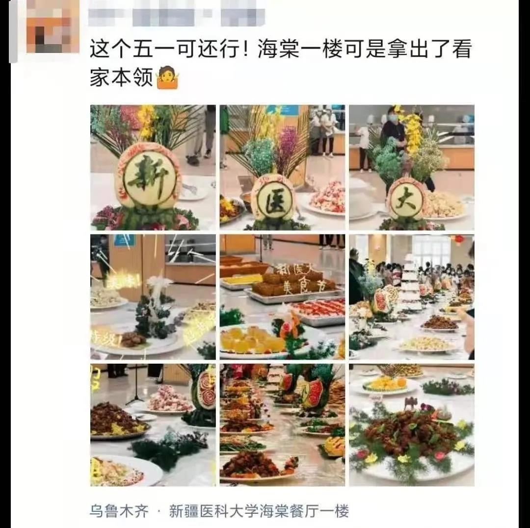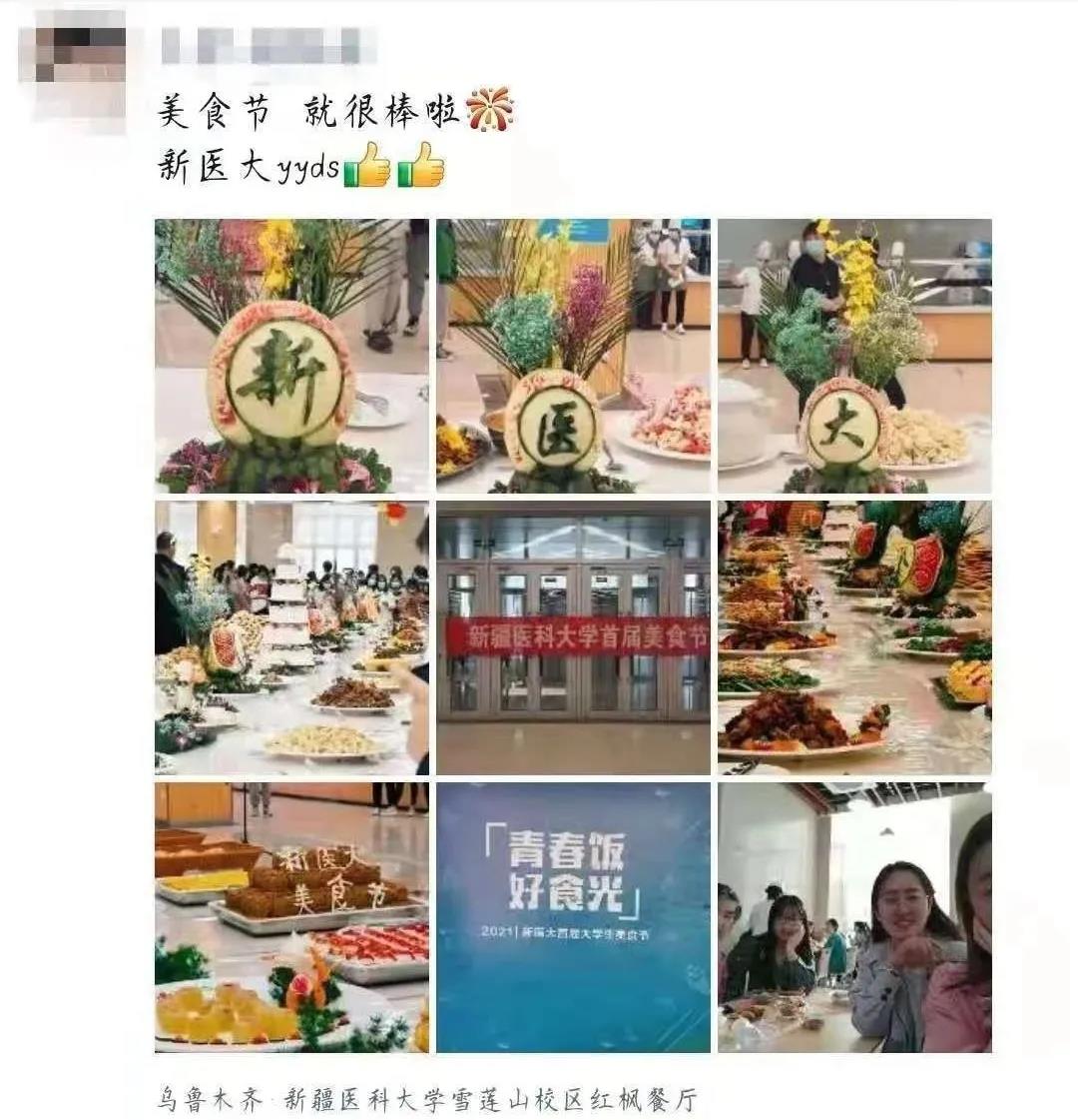 在海棠餐厅和红枫餐厅一楼大厅,由后勤处饮食服务中心厨师们精心为同学们准备的近百种各式菜肴、面点,摆上了餐桌。鲜嫩多汁的巴里坤羊排、黄焖羊肉暖胃又暖心,地道的柴窝铺辣子鸡、烤包子,让同学们吃出了家的味道,还有清蒸鲳鱼、橘子虾仁、香柠菠萝鸡、手撕牛肉、黄面烤肉……让大家吃得营养健康,吃出幸福滋味。