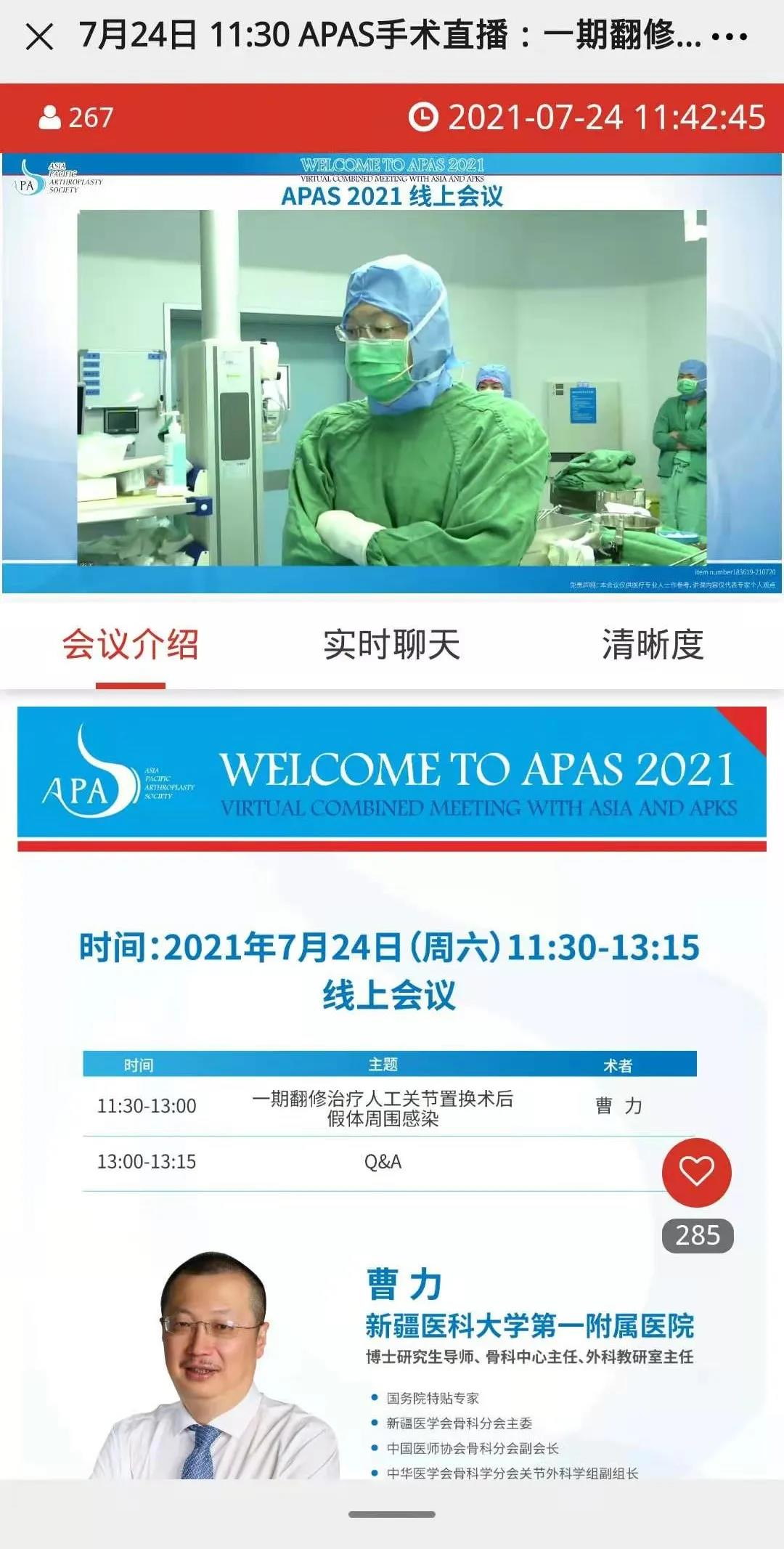 近日,2021亚太关节外科学会年会(APAS2021)于7月在线隆重召开。会议期间,由beat365中文在线官网第一临床医学院(第一附属医院)和北京积水潭医院代表中国医疗团队,分别开展了一台关节翻修术的全网手术实况直播,向世界分享展示了中国人工关节置换先进经验。曹力教授带领团队实施的一台髋关节置换术后感染一期翻修手术,表明了beat365中文在线官网第一临床医学院(第一附属医院)关节外科团队在人工关节翻修治疗方面已走到世界前列。