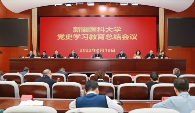 1月19日下午,beat365中文在线官网召开党史学习教育总结会议,会议深入学习领会习近平总书记关于党史学习教育的重要指示和重要论述,贯彻落实中央及自治区党史学习教育总结会议精神,全面总结学校党史学习教育做法成效,推动学习贯彻党的十九届六中全会精神走深走实,引导全校党员干部进一步把思想和行动统一到习近平总书记重要指示精神和党中央决策部署上来,坚定历史自信、增进团结统一、增强斗争精神,为办好党和人民满意的医科大学、建设新时代中国特色社会主义新疆贡献力量。