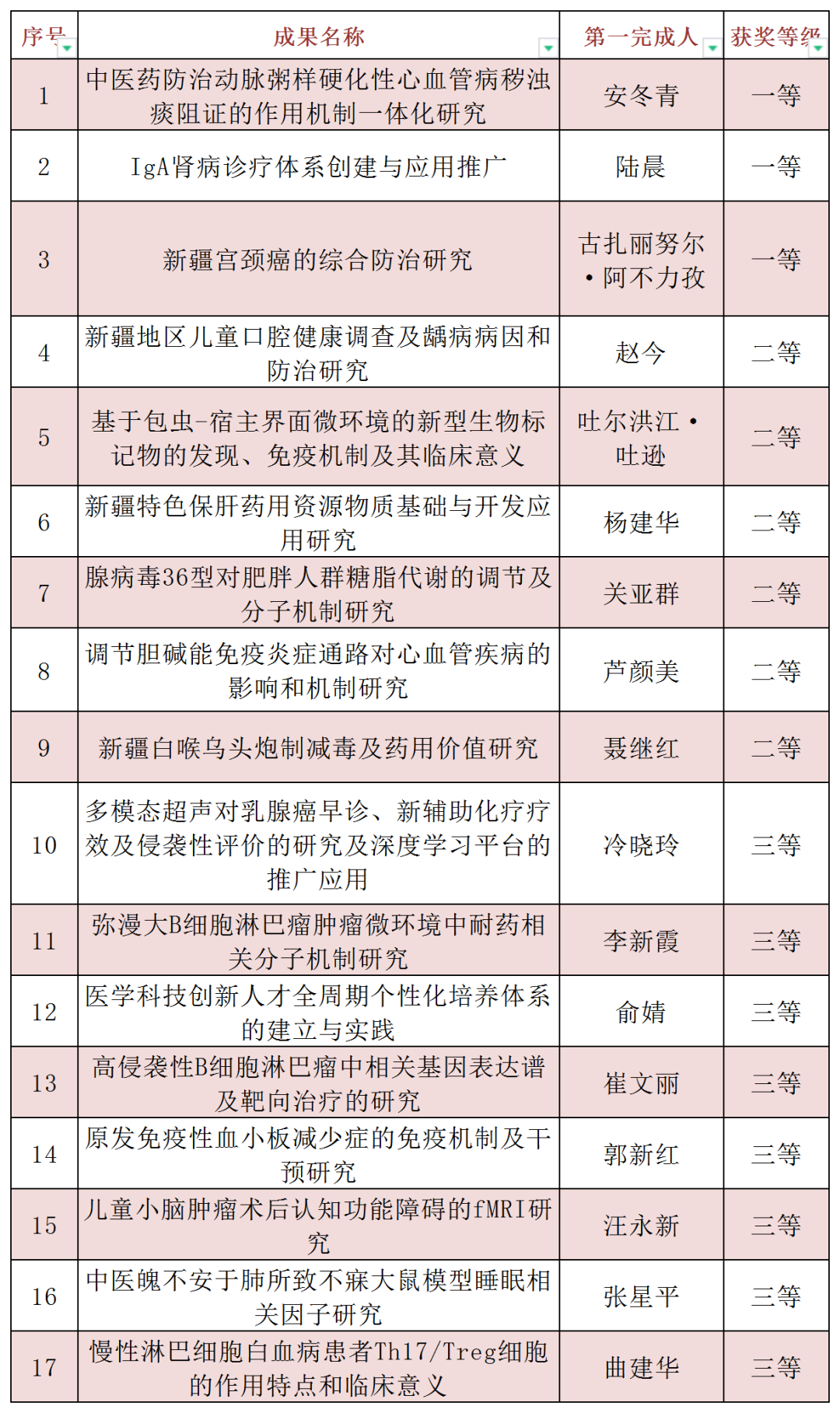 2021年度获自治区科技奖名单