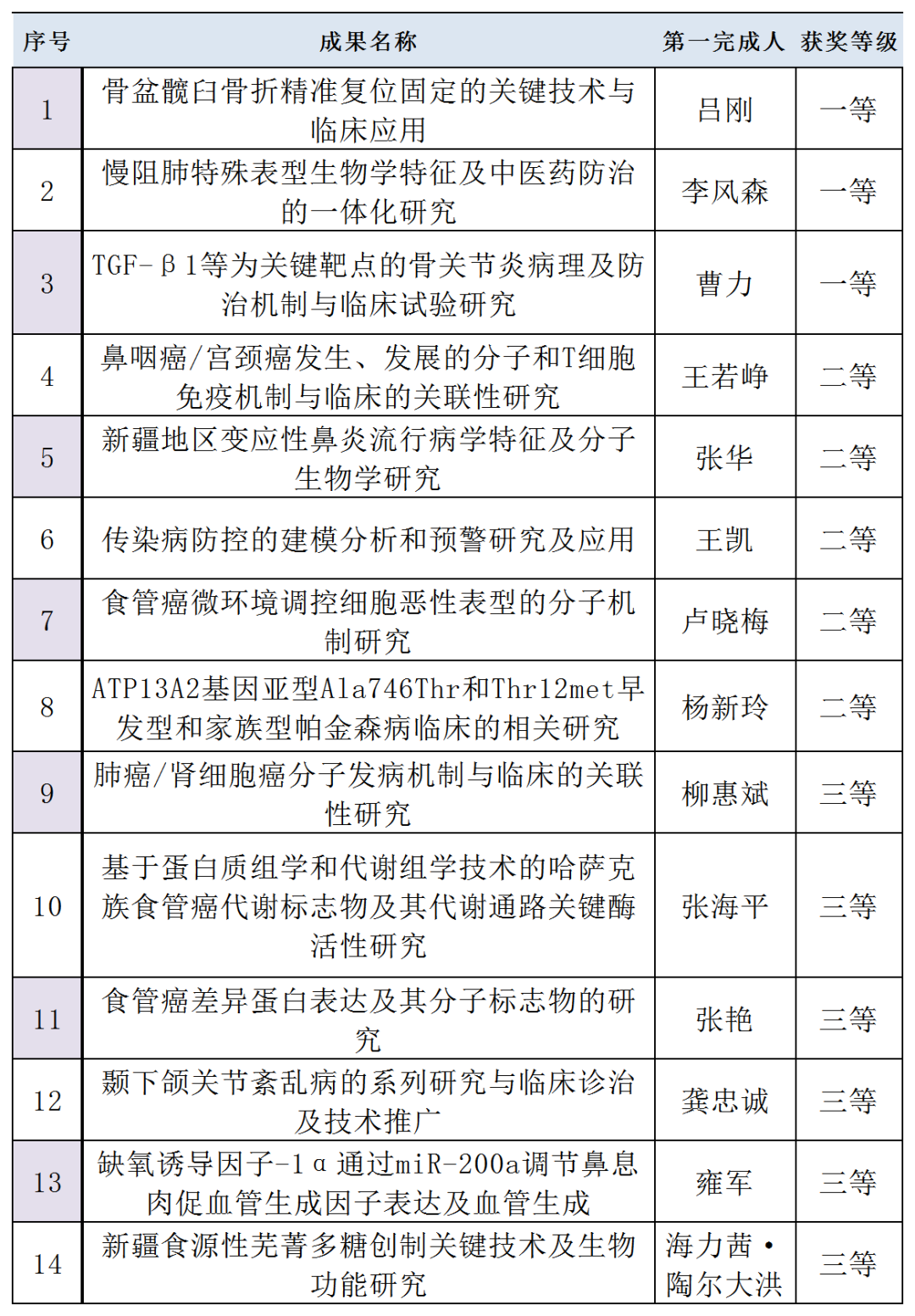 2020年度获自治区科技奖名单