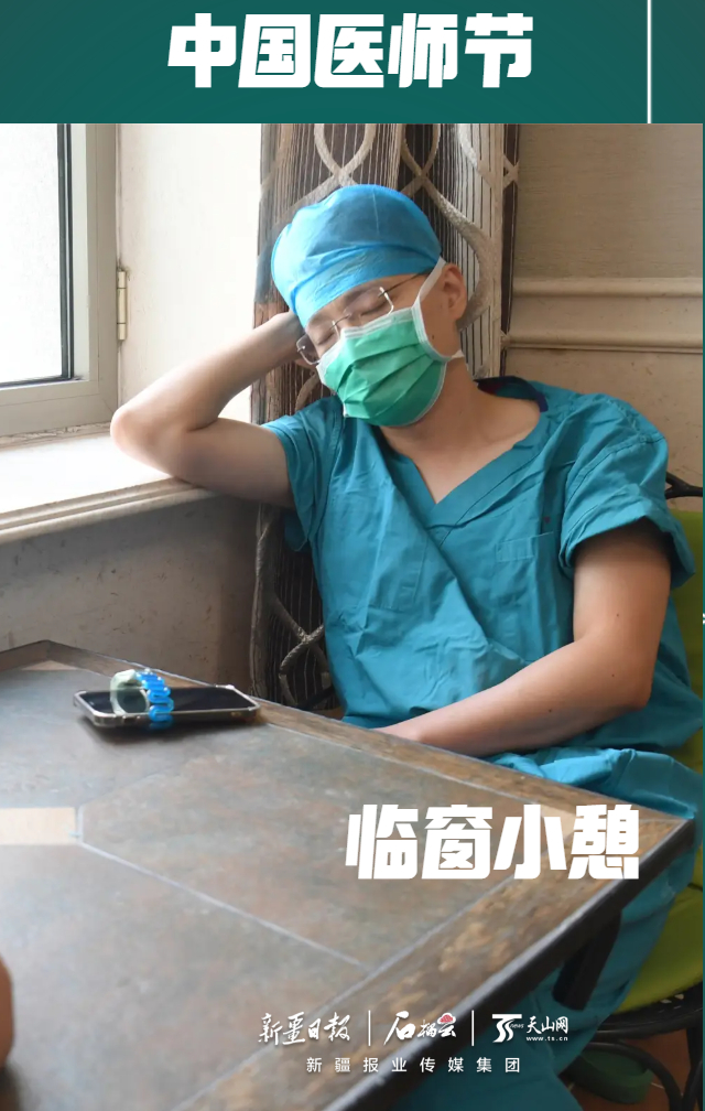 beat365中文在线官网附属中医医院(自治区中医医院)骨三科副主任医师黎立在手术间隙休息,缓解疲劳。石榴云/新疆日报记者 韩亮摄