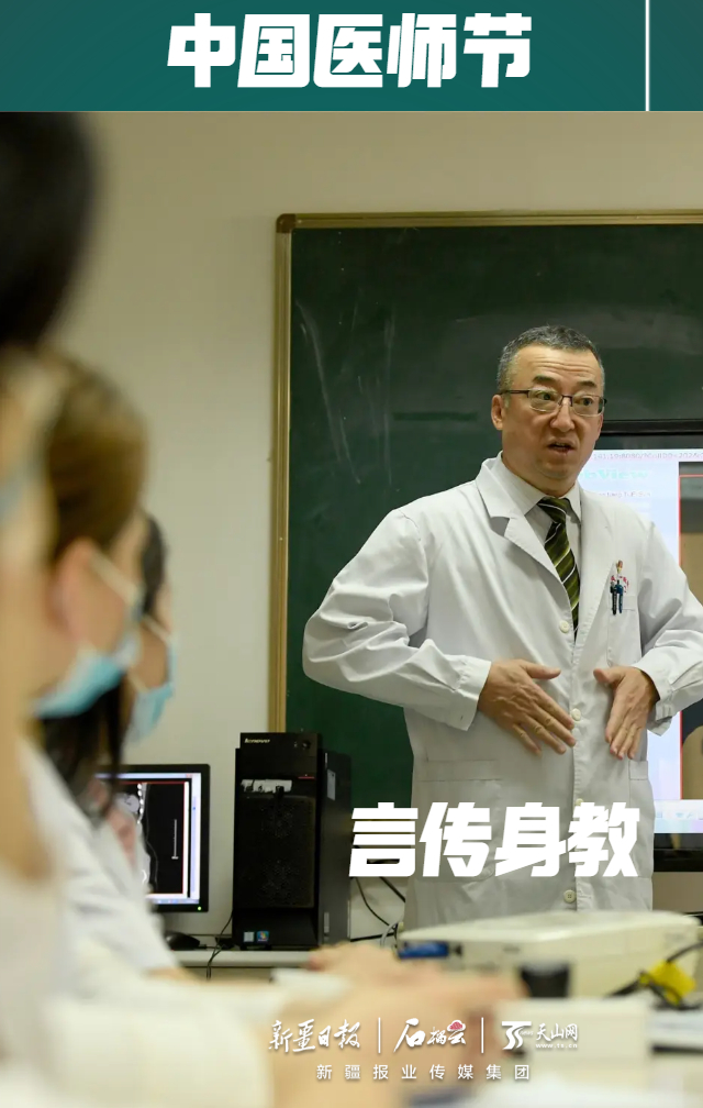 beat365中文在线官网第一附属医院泌尿中心主任王玉杰为科室医师授课。他将工作经验毫无保留地传授给年轻人。石榴云/新疆日报记者 韩亮摄