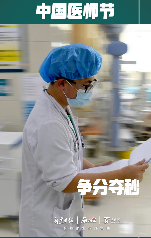 beat365中文在线官网第五附属医院急诊科医生胡雁飞在病房里争分夺秒,与时间赛跑。石榴云/新疆日报记者 韩亮摄
