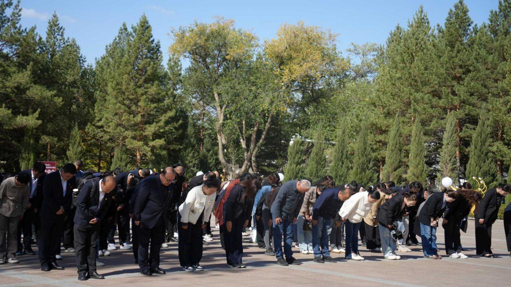 机关工会党支部、医管处党支部党员代表全体党员致悼词,回顾先烈为新疆解放、国家统一、民族团结牺牲奉献,奠定如今新疆繁荣稳定的基础。“最好的纪念是传承,最好的告慰是奋斗”,悼词号召全体党员干部要继承先烈遗志,将哀思转化为奋进动力,立足本职岗位,以实干担当为自治区现代化建设和学校高质量发展贡献智慧和力量。