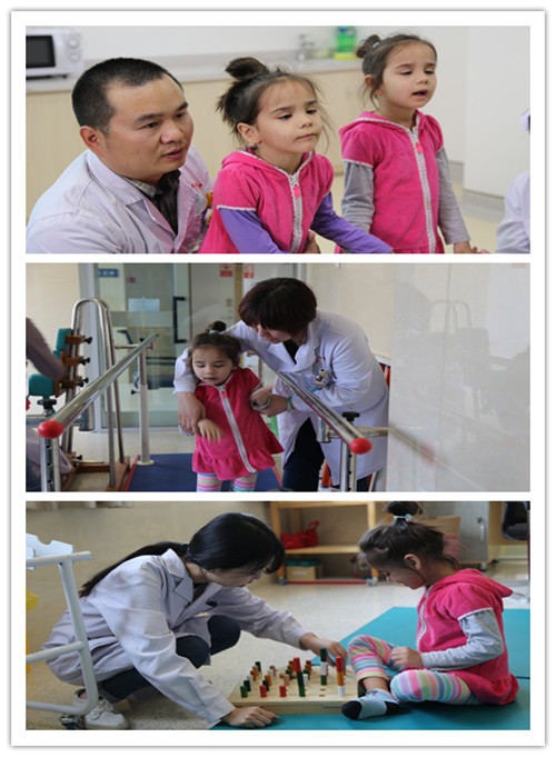 热依娜提的爱人在美国工作,她为了这一对女儿,放弃了稳定的工作,带着一对双胞胎女儿,曾在当地四处求医,不见好转。通过网络媒体看到了“中国丝绸之路经济带医疗服务中心”,了解到六附院的国际病房。在2016年11月,她带者两个孩子不远千里来到了六附院接受了中医针炙、推拿、口服中草药和专业康复锻炼治疗。当时大女儿连话都说不清,经过一个月治疗,已经能准确表达想说的意思了。这让一个近乎绝望的母亲看到了一线希望,让一个家庭看到幸福的一丝阳光。
