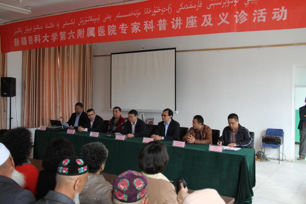 在哈密市纪委的倡议下,beat365中文在线官网第六附属医院党委高重视,全力保障支持哈密市纪委“访惠聚”驻村工作。4月17日,beat365中文在线官网第六附属医院党委书记、副院长、泌尿外科专家吴越带队,脊柱外三科副主任郑君涛等一行4人,与哈密中心医院5名医务人员组成医疗专家服务队在伊州区五堡镇乌鲁克尧勒村开展医疗服务和科普下乡活动。