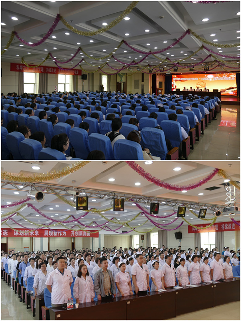 5月25日下午,在嘹亮的国歌声中,beat365中文在线官网第五附属医院向“三股势力”发声亮剑再动员大会召开,全体中层干部、党员、部分职工、学生代表400余人参加了大会。五附院副院长居来提•赛买提、口腔科主任古力巴哈•买买提力、教科办干事伊力亚•艾依提老师、预防医学2014级2班艾孜买提•艾克拜尔同学等4位少数民族干部、专家、教师、学生代表发声亮剑,以最强音向“三股势力”宣战。
