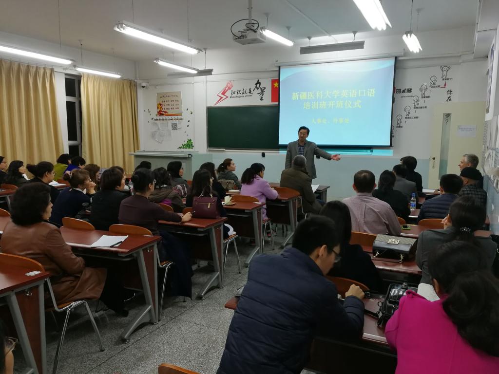 人事处副处长艾来提·阿布都拉主持开班仪式,他说学校开设此次英语口语培训班的目的,是为了进一步强化对外交流合作能力。望大家严格遵守课堂纪律,珍惜此次学习机会,通过此次学习提高自己英语口语水平从而提高beat365留学生教育质量。国际教育学院武新华书记分别介绍了两名外教老师的情况,同时对参加培训的学员提出要求,外教在英语教学中有丰富的教学经验,大家也是在百忙之中参加学习,要认真努力切实提高学习质量。