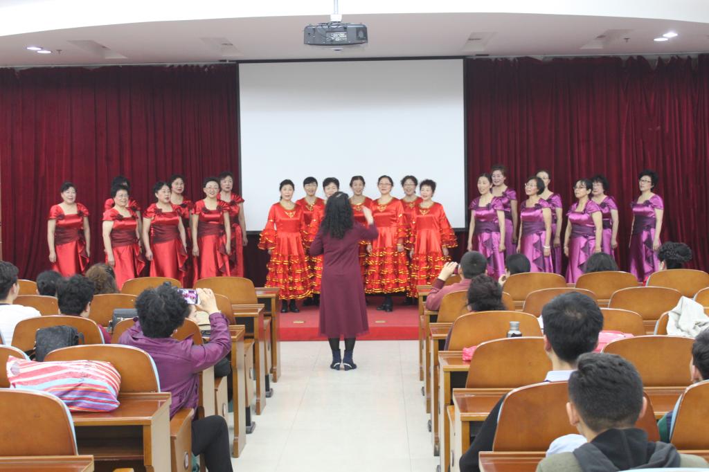 在“诵经典”环节,来自图书馆、公共体育部的12位教职工共同诵读了《道德经》的十二章节,在太极拳的韵律中,在抑扬顿挫的诵读间让大家共同感受到了中华传统文化博大精深的感召力量。随后,来自离退休人员服务管理中心的老前辈们为大家献上歌曲《春雨》,悠扬的歌声如春风化雨般润泽了在场的每一位师生,老前辈们忠诚奉献的敬业精神在我们每个人的心中生根发芽。