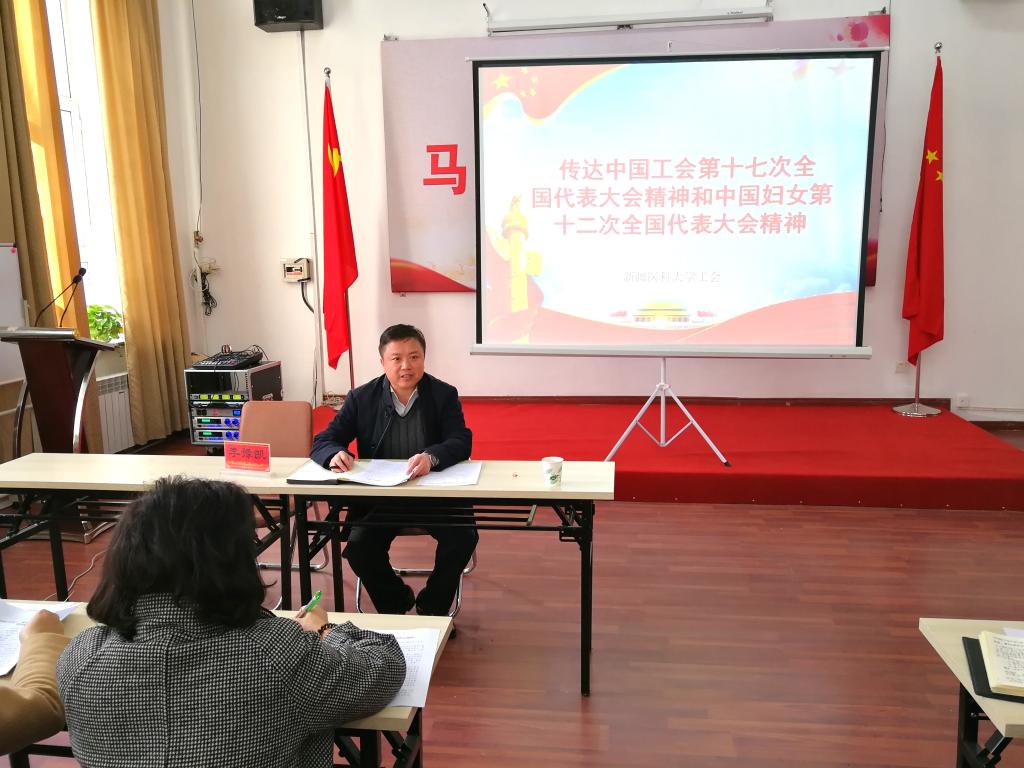 11月13日上午,大学工会组织全校工会委员会委员、女工委委员和基层工会干部认真传达学习中国工会十七大精神和中国妇女十二大精神,会议由学校党委常委、统战部部长,工会主席李豫凯主持。